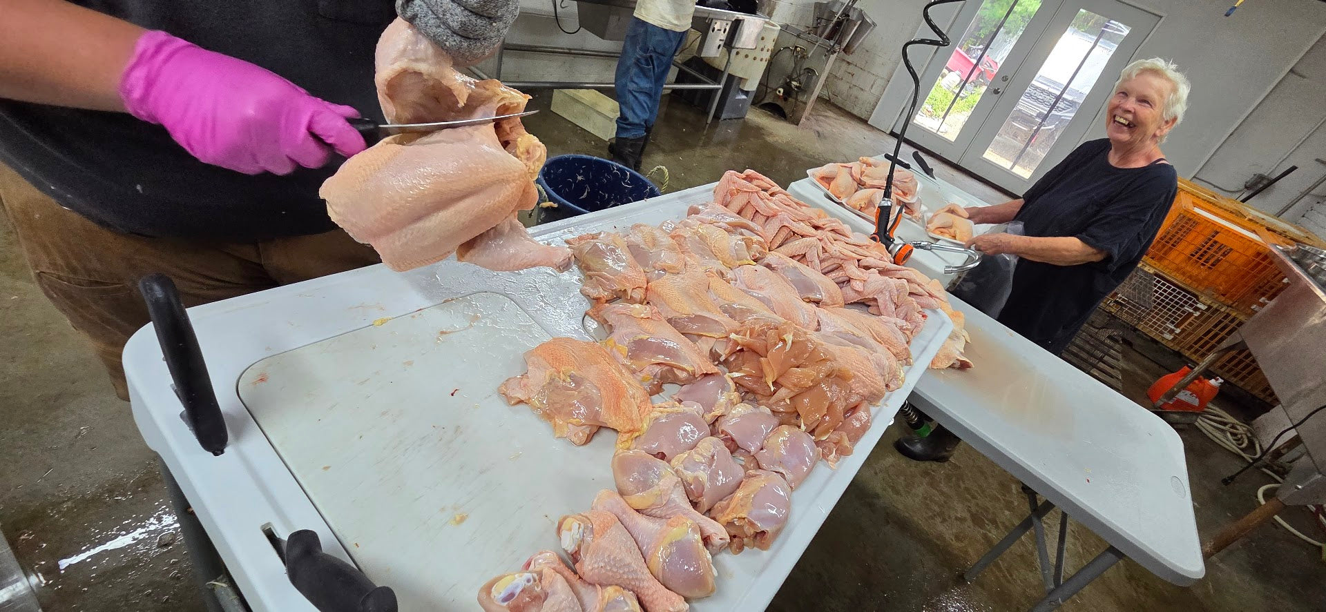 In each of your batches, if you choose a full share you will receive 4 chickens, and a half share you will receive 2 chickens. You can customize those chickens to your liking. You can choose to keep them as whole oven ready chickens, or have us cut them into halves or a spatchcock cut. Alternatively, you may like all those popular cuts, such as breasts, tenderloins, wings and legs. For this you would choose to part out your chickens.