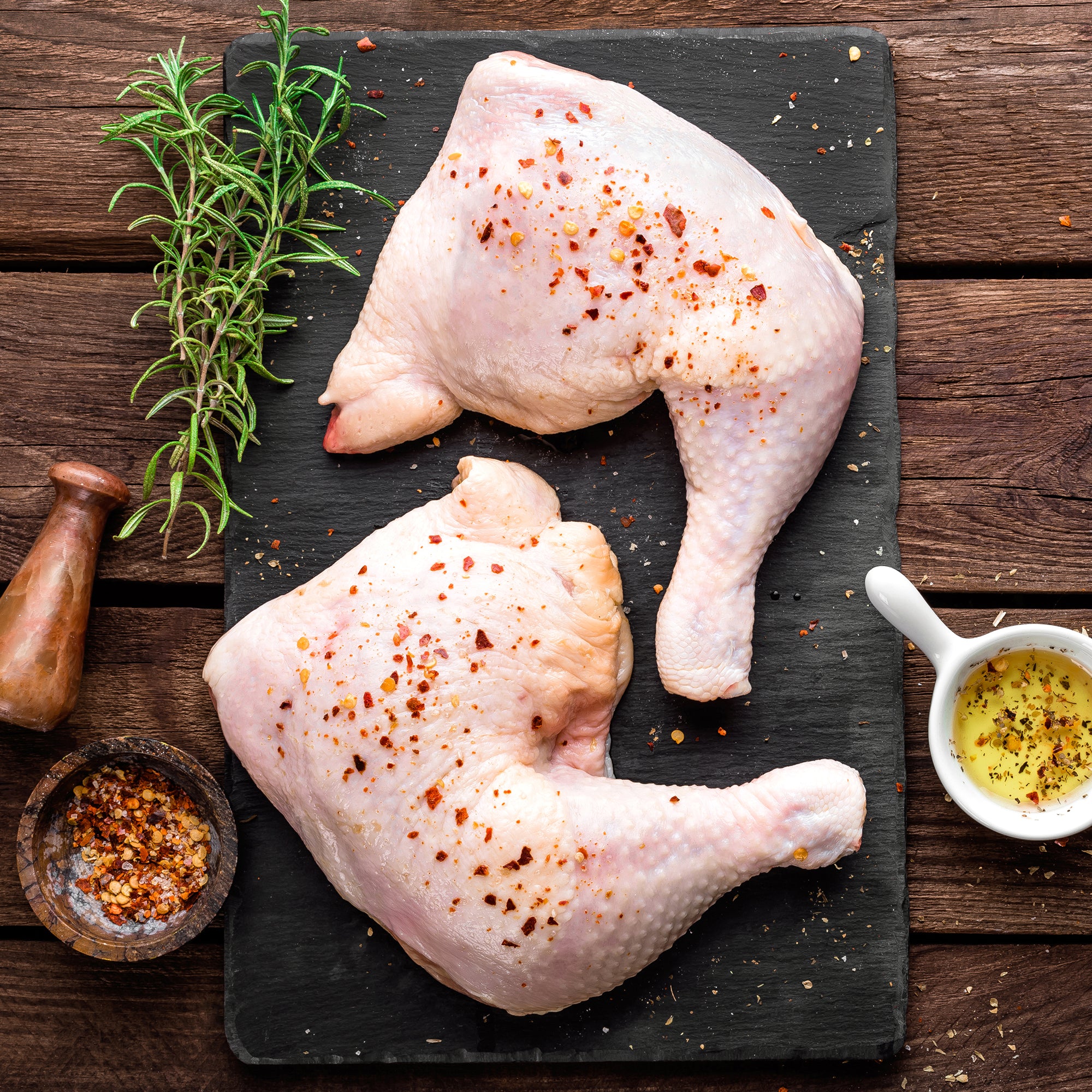 Factory farmed chicken is sanitized with a chlorine rinse, which in turn ends up in your dinner. We never use any harsh chemicals, ensuring a clean food free from toxins.