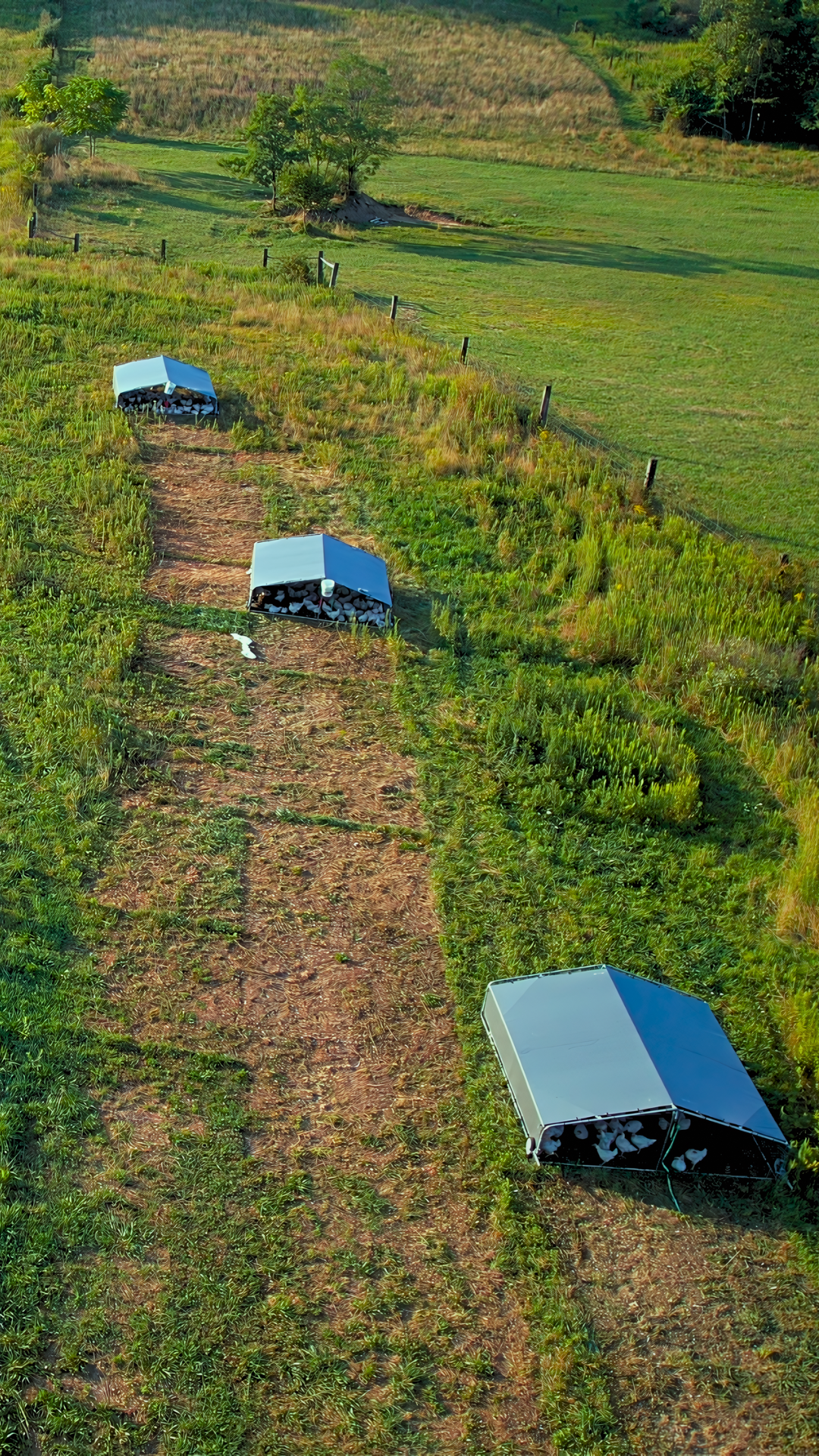 Our chickens are raised in portable, floorless, shelters, which gives them access to pasture, a fresh breeze and sun while keeping them safe from predators and harsh weather. These shelters are moved every day to a fresh pasture spot, ensuring freshness.